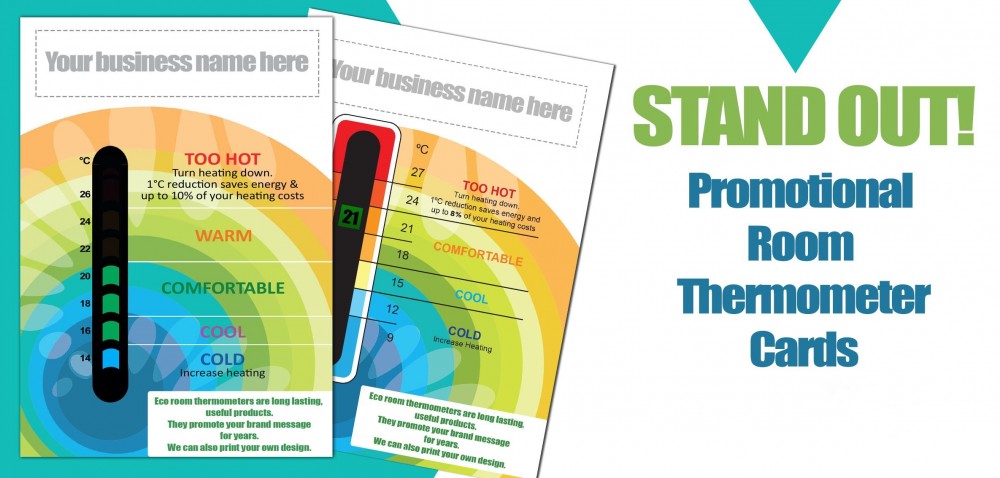 Promoting your business or organisation with your message is paramount. An easy low cost way to do this is with a promotional item like a liquid crystal LC room thermometer card bearing your company details and information, for your promotional thermometer pack or thermometer handouts where a temperature guide is useful.